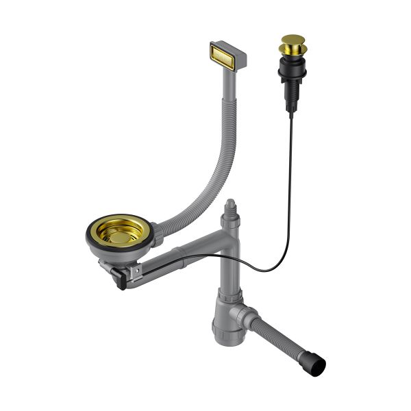 Арматура для одночашевых моек с прямоугольным переливом, декоративной решеткой и клапаном-автомат. Подходит для моек из серий TAKI, AKISAME, OMI, TADZAVA И KATA.