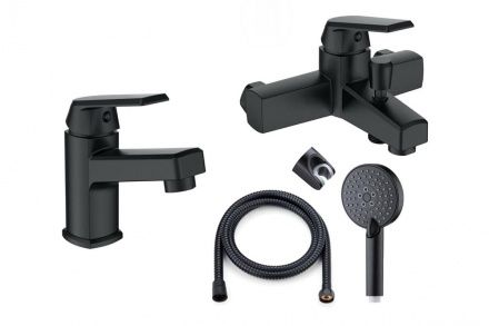 Набор полимерных смесителей для ванной комнаты OneLife – отличный выбор для современного интерьера. Фирменный картридж Orange обеспечит легкое управление напором и температурой воды. Вместо привычного латунного сплава он изготовлен из запатентованного высокотехнологичного полимера (выдерживает 510 000 циклов и 53 АТМ без замены изделия после теста на цикличность, исключает возможность обжечься при касании, не подвержен коррозии и окислению, стойкий к отрицательным температурам), что обеспечивает срок службы более 15 лет. Аэратор, обогащая струю воздухом, делает ее мягкой и без брызг. Цвет матовый черный. В комплекте душевой набор (душевая лейка d 110 мм 3 режима, шланг в металлической оплетке 1500 мм., настенный держатель лейки с регулировкой угла наклона).