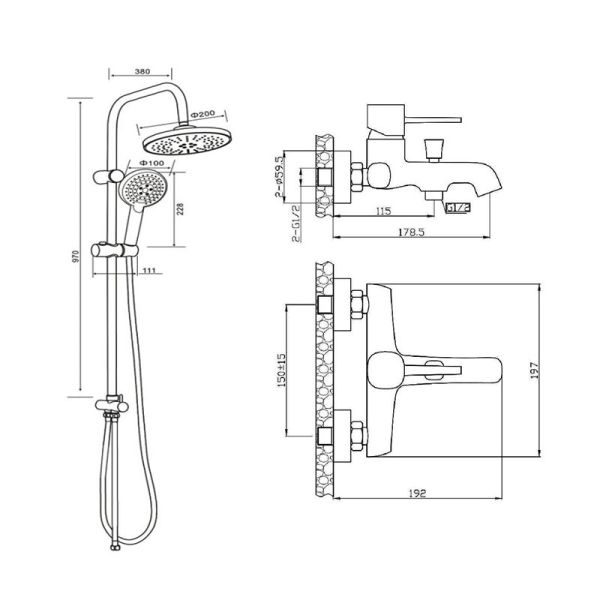 Душевая система с смесителем для ванны/душа в цвете черный матовый: верхний душ (d200 мм) создаёт эффект тропического дождя, что дарит непередаваемые эмоции во время ежедневных банных процедур. Ручной душ 100 мм (3 режима) на гибком полутораметровом шланге (в металлической оплетке) с защитой от перекручивания. Держатели верхнего и ручного душа с регулировкой угла наклона, штанга 970 мм. Подвижные детали отличаются долговечностью. Фиксируется душевая система непосредственно на стене, что позволяет рационально использовать ограниченное пространство ванной комнаты. Модное на сегодняшний день покрытие чёрного цвета, за которым просто ухаживать мягкой салфеткой, получено порошковой окраской с многоступенчатой системой подготовки и высокотемпературной обработкой.