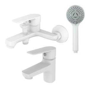 Набор смесителей для ванной комнаты Loop от немецкой компании Orange – отличный выбор для современного интерьера. Латунное изделие устойчиво к коррозии и высоким температурам, а покрытие в цвете глянцевый белый делает незаметными разводы и высохшие капли. Керамический картридж обеспечивает долговечность изделия, стабильную подачу воды и мощный напор. Излив оснащен пластиковым аэратором, он создает ровную мощную струю и легко очищается от известкового налета. В комплекте душевой набор (душевая лейка d 90 мм 3 режима, шланг в металлической оплетке 1500 мм., настенный держатель лейки).