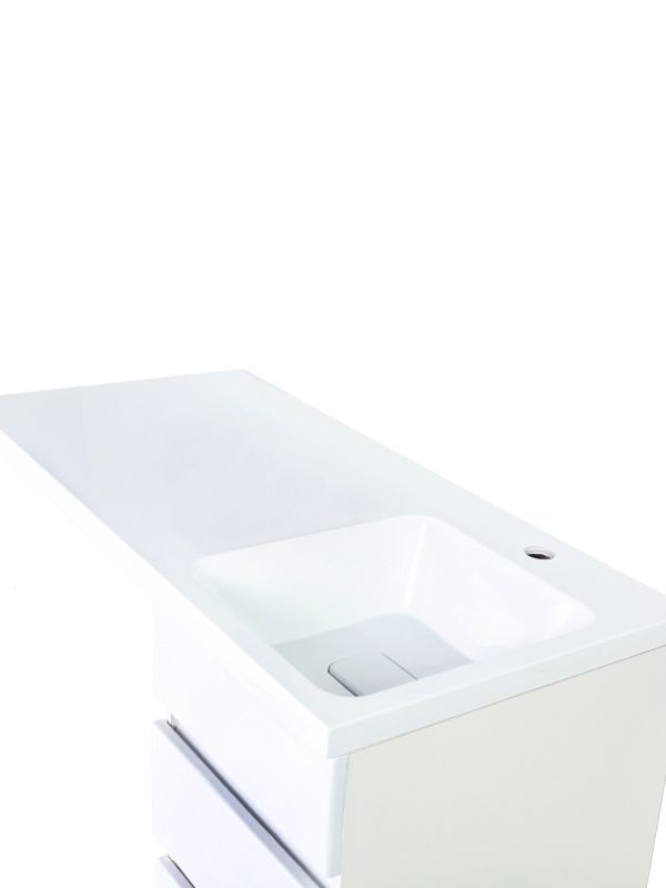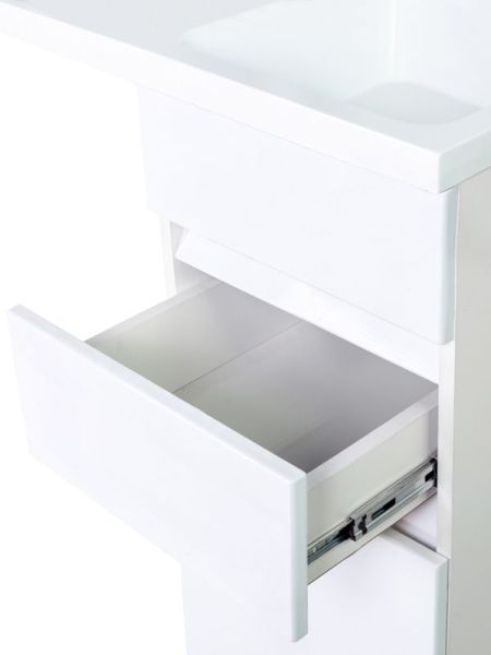 Тумба с раковиной под стиральную машину Orange Optima, правая, белый, ST-40TUW+RAROrange OPTIMA ST-40TUW+RAR Тумба напольная с правой раковиной под стиральную машину. Предназначена для использования в ванных комнатах с повышенной влажностью. Тумба укомплектована выдвижным ящиком, также для хранения предусмотрен нижний отсек с дверцей. Фасад - МДФ в цвете белый глянец, покрытие пленка ПВХ. Корпус - ЛДСП в цвете белый глянец. Раковина с одним отверстием под смеситель (материал - искусственный камень).В комплекте ножки подпятники 4 шт (регулировка по высоте до 10 мм) и кронштейн для крепления крыла раковины.