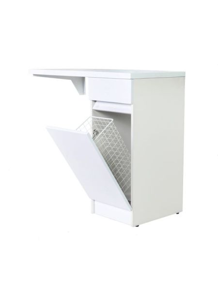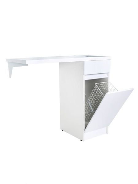 Тумба с раковиной под стиральную машину Orange Optima, правая, белый, с корзиной для белья, STK-40TUW+RAROrange OPTIMA STK-40TUW+RAR Тумба напольная с правой раковиной под стиральную машину c корзиной для белья. Предназначена для использования в ванных комнатах с повышенной влажностью. Откидная дверца с корзиной для белья оснащена механизмом плавного открывания. Фасад - МДФ в цвете белый глянец, покрытие пленка ПВХ. Корпус - ЛДСП в цвете белый глянец. Раковина с одним отверстием под смеситель (материал - искусственный камень).В комплекте ножки подпятники 4 шт (регулировка по высоте до 10 мм) и кронштейн для крепления крыла раковины.