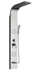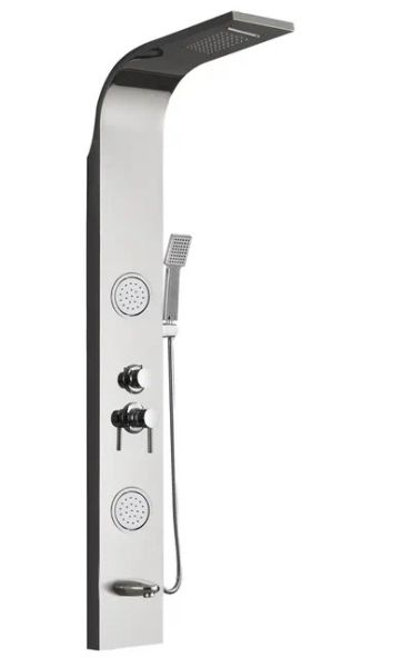 - Комплектация: душевая панель, душевая лейка, смеситель, шланг для душа, верхний душ, крепеж, инструкция