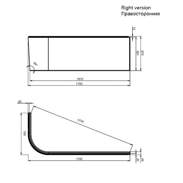 Панель фронтальная для ванны Am.Pm X-Joy W94A-170R70W-P 170 см белый купить