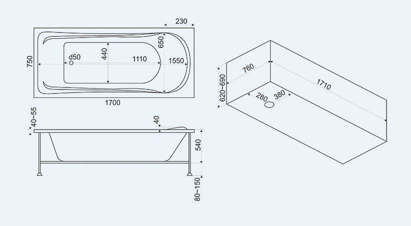 Экраны (панели) применяют не только для создания интересных интерьеров ванной комнаты. Их также используют для скрытия неприглядных инженерных коммуникаций, сливных труб и прочего сантехнического оборудования: кранов, вентилей и т. д. Красиво оформленный экран под ванну выступит отличным дополнением любого интерьера, придав ему ноток экстравагантности и необычности.Панель фронтальная BAS Мальта предназначена для установки к акриловой ванне модели Мальта размером 1700х750 мм. Панель из акрила устанавливается спереди ванны и позволяет придать ее конструкции целостный и эстетичный вид. Отличается высокой прочностью, а также стойкостью к загрязнению и механическим повреждениям. Она создана по соответствующим размерам и имеет нейтральный дизайн, подчеркивая эстетичность изделия. Панель позволяет придать ванне завершенность и практичность. Экран устраняет проблему лишней уборки, так как защищает пространство под ванной от засорения. Кроме того, он легко скрывает коммуникации или монтажные конструкции, декорируя их.Используемый в производстве акрил практически не подвержен деформациям. Панели для ванны стойкие к воздействию влаги и сохраняют свой внешний вид даже при повышенном уровне влажности. Материал экологичен и не допускает размножения бактерий, оставаясь экологически безопасными и гипоаллергенными.