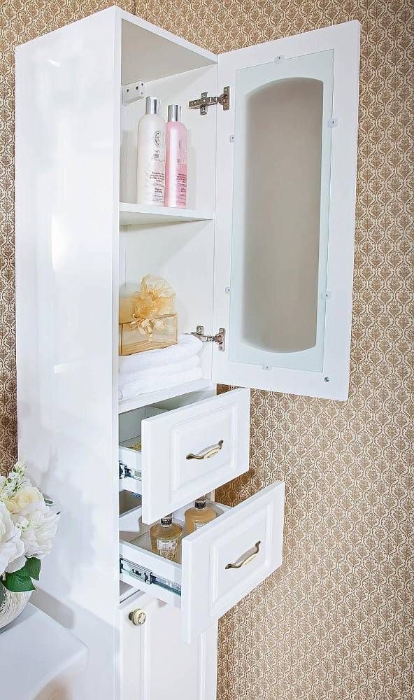 Основное преимущество шкаф-пенала заключается в его вместительности. Удобные полки и ящики позволяют организовать пространство и разместить все необходимое: от косметики до бытовых принадлежностей. Каждая деталь продумана для удобства использования, что делает утренние и вечерние ритуалы более приятными.