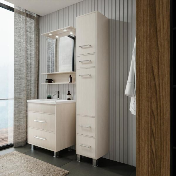 Шкаф-пенал для ванной комнаты – это стильное решение, которое гармонично вписывается в современный интерьер. Его элегантные линии и аккуратные формы создают атмосферу чистоты и порядка, что особенно важно в таком интимном пространстве. Изготовленный из качественных влагостойких материалов, этот шкаф обеспечивает долговечность и надежность, даже в условиях повышенной влажности.