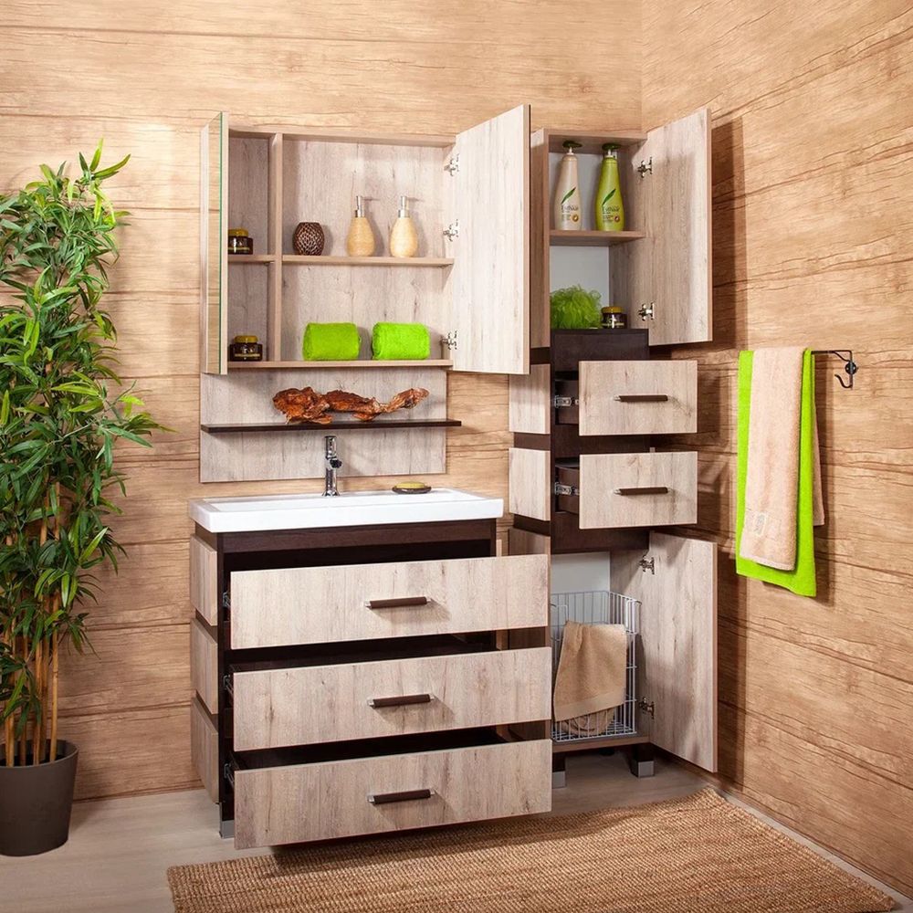 Основное преимущество шкаф-пенала заключается в его вместительности. Удобные полки и ящики позволяют организовать пространство и разместить все необходимое: от косметики до бытовых принадлежностей. Каждая деталь продумана для удобства использования, что делает утренние и вечерние ритуалы более приятными.