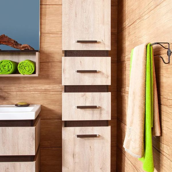Шкаф-пенал для ванной комнаты – это стильное решение, которое гармонично вписывается в современный интерьер. Его элегантные линии и аккуратные формы создают атмосферу чистоты и порядка, что особенно важно в таком интимном пространстве. Изготовленный из качественных влагостойких материалов, этот шкаф обеспечивает долговечность и надежность, даже в условиях повышенной влажности.