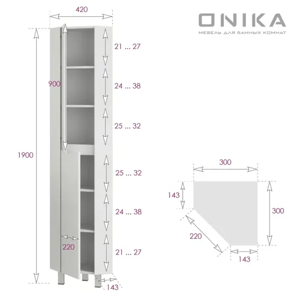 Пенал напольный Onika Айленд 403082 угловой 30см белый купить