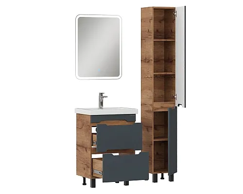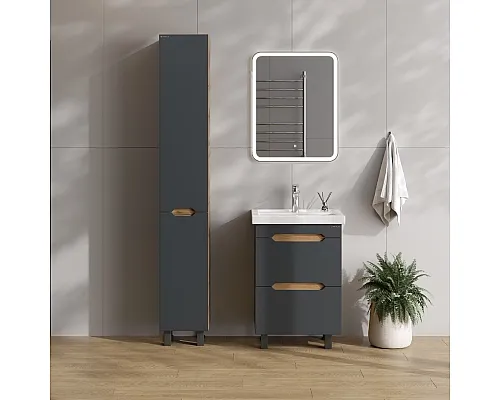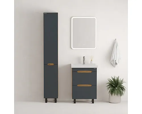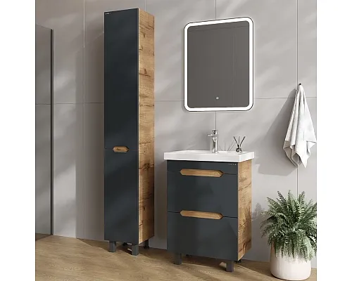 Напольный пенал для ванной комнаты Onika Айленд 30 сочетает в себе стильный минималистичный дизайн, высочайшее качество исполнения и актуальные тренды цвета: графит и дуб крафт золотой.