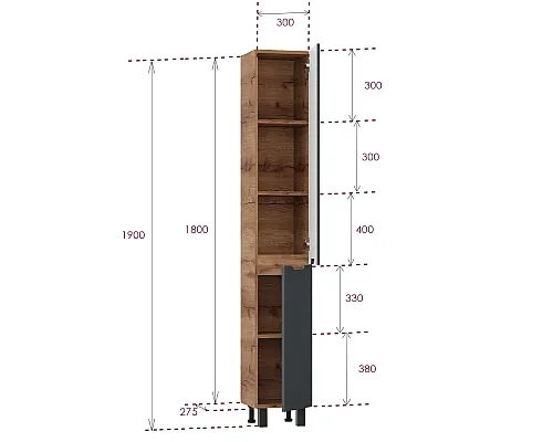Пенал напольный Onika Айленд 403084 30 см графит/дуб крафт золотой купить