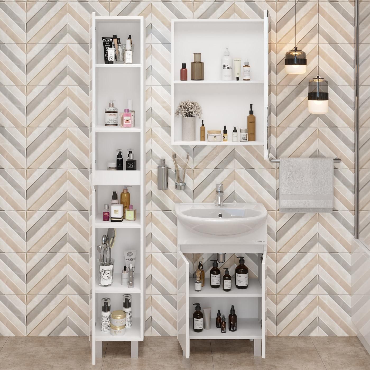 Пенал имеет универсальную ориентацию: при установке верх и низ пенала можно менять местами, а дверцы могут открываться как влево, так и вправо.