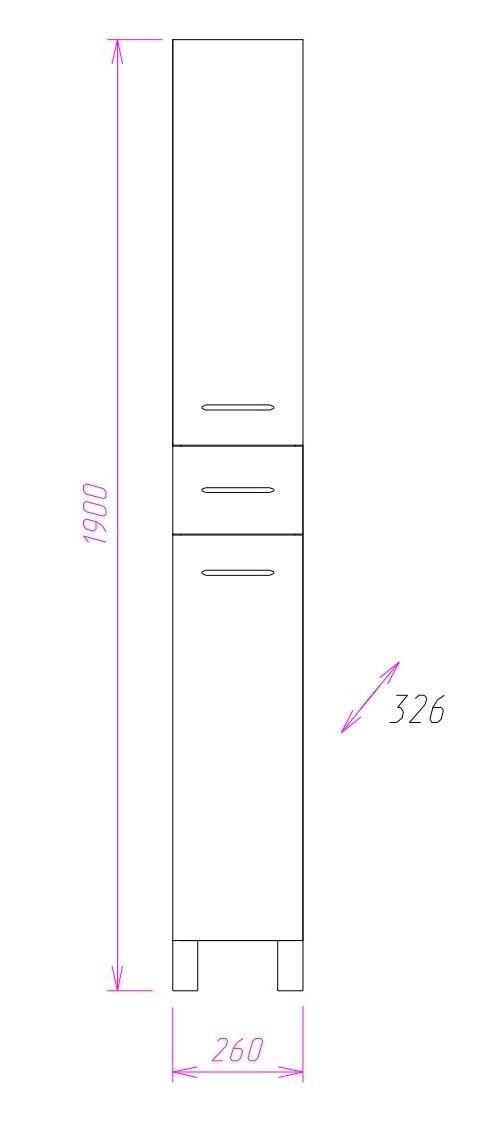 Размер пенала с ножками: 26х33х190 см.