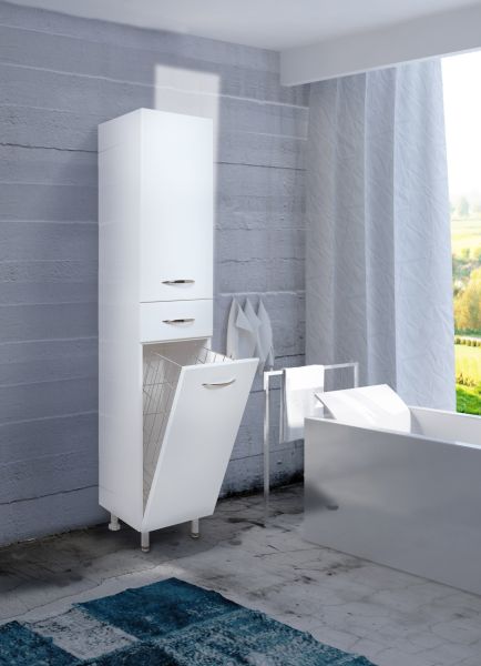 Напольный пенал для ванной комнаты с корзиной для белья Onika МОДЕРН 26, благодаря простому минималистичному дизайну, белому глянцевому фасаду, подойдет под любой интерьер ванной комнаты.