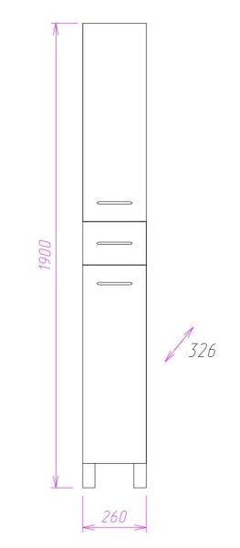 Большое отделение сверху за распашной дверцей с механизмом плавного закрывания, небольшой ящик с направляющими полного выдвижения посередине и отделение с корзиной для белья внизу шкафа обеспечит бережное хранение всех необходимых в ванной комнате вещей. Размер бельевой корзины: 180*240*650.