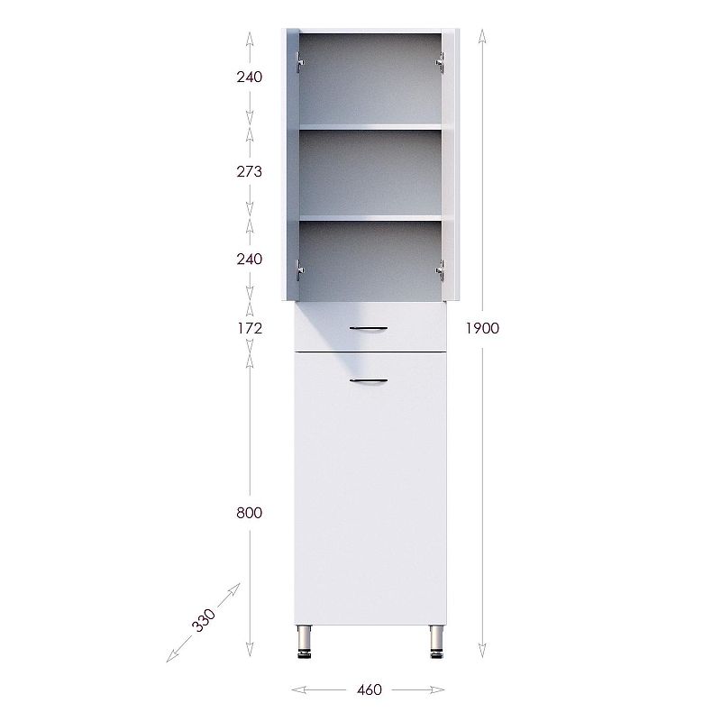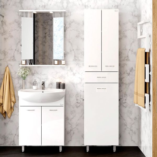 Напольный пенал для ванной комнаты Onika МОДЕРН 46, благодаря простому минималистичному дизайну, белому глянцевому фасаду, подойдет под любой интерьер ванной комнаты.