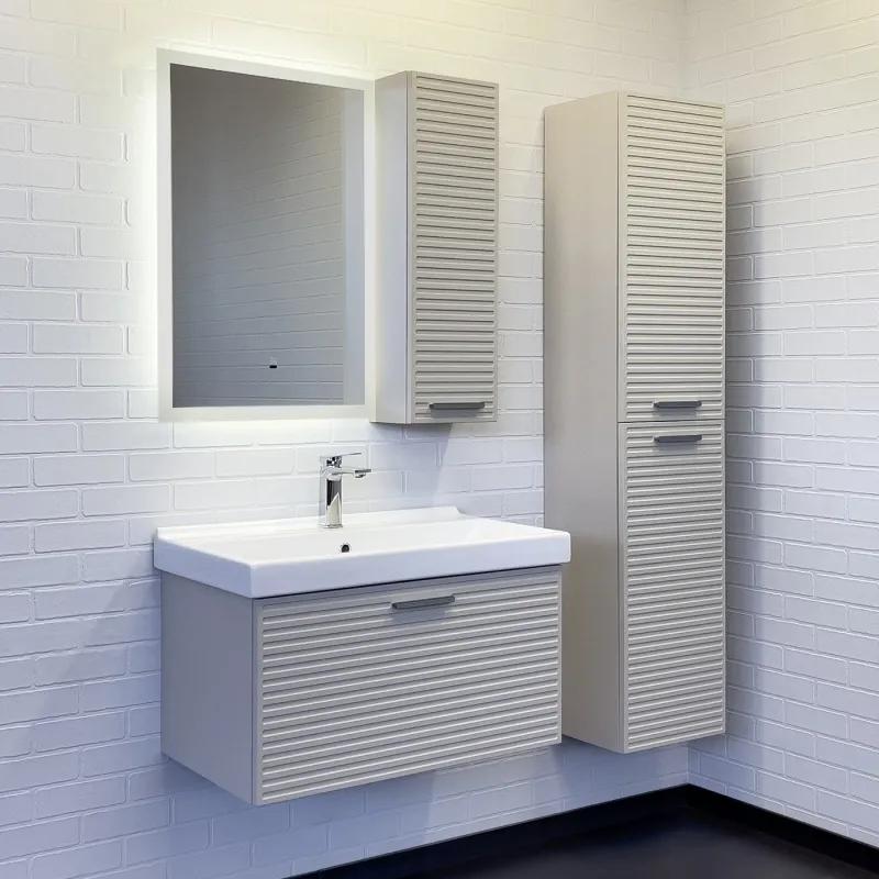 Пенал подвесной Comforty Касабланка 00-00017851 серый шелк 35 смПодвесная шкаф колонна с двумя створками. Створки оснащены петлями с плавным закрыванием и серыми матовыми алюминиевыми ручками. Корпус шкаф-колонны изготовлены из влагостойкого ЛДСП. Фасад пенала из МДФ фрезерован горизонтальным узором и обтянут в пленку цвета серый шёлк. Шкаф-колонна универсальна, фасады могут быть установлены как с левой, так и с правой стороны