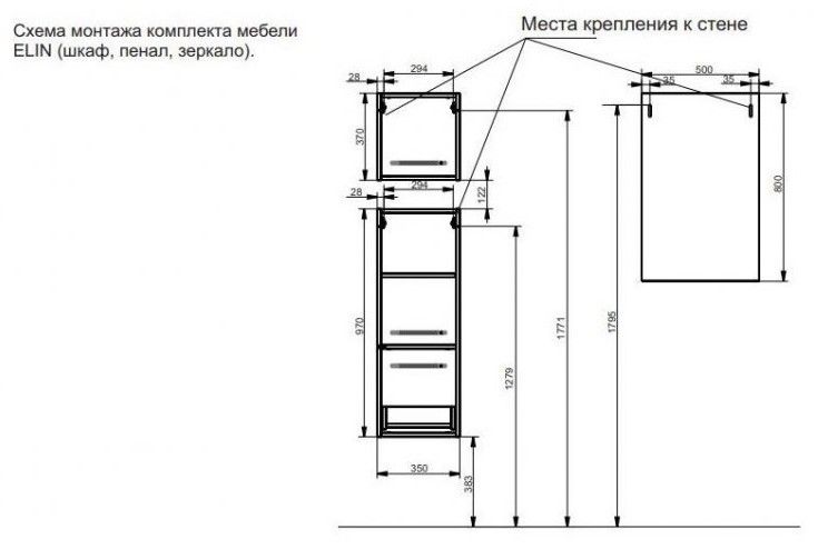 Коллекция мебели для ванной комнаты ELIN выполнена в современном стиле. Пенал состоит из двух частей. Верхняя часть выполнена с распашной дверцей и дополнительной полкой, которая позволит правильно разграничить пространство. В нижней части располагается функциональный выдвижной ящик для хранения различной бытовой химии.