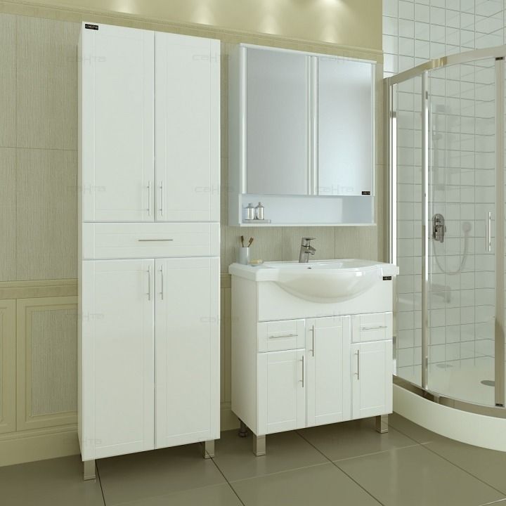 Шкаф-пенал СанТа отличное решение для создания комфортной атмосферы в любой ванной комнате. Напольный способ установки производится непосредственно на пол, при этом конструкция максимально устойчива при серьезных физических нагрузках. В производстве используют только качественные влагостойкие материалы (ВЛДСП), в составе которых полностью отсутствуют опасные вещества. Серия Вегас отличается превосходным дизайном с соблюдением всех существенных элементов современного стиля. Основным цветом, в котором выполнен шкаф-пенал СанТа является белый, безупречно впишется в любой дизайн проект. Шкаф-пенал предусматривает удобную и вместительную систему хранения, состоящую из дверей.Страной бренда СанТа является Россия, все товары производятся с выполнением соответствующих стандартов качества, что позволяет быть полностью уверенными в долговечности и надежности. Шкаф-пенал СанТа поможет сделать уютным любой интерьер и создать идеальную ванную комнату.