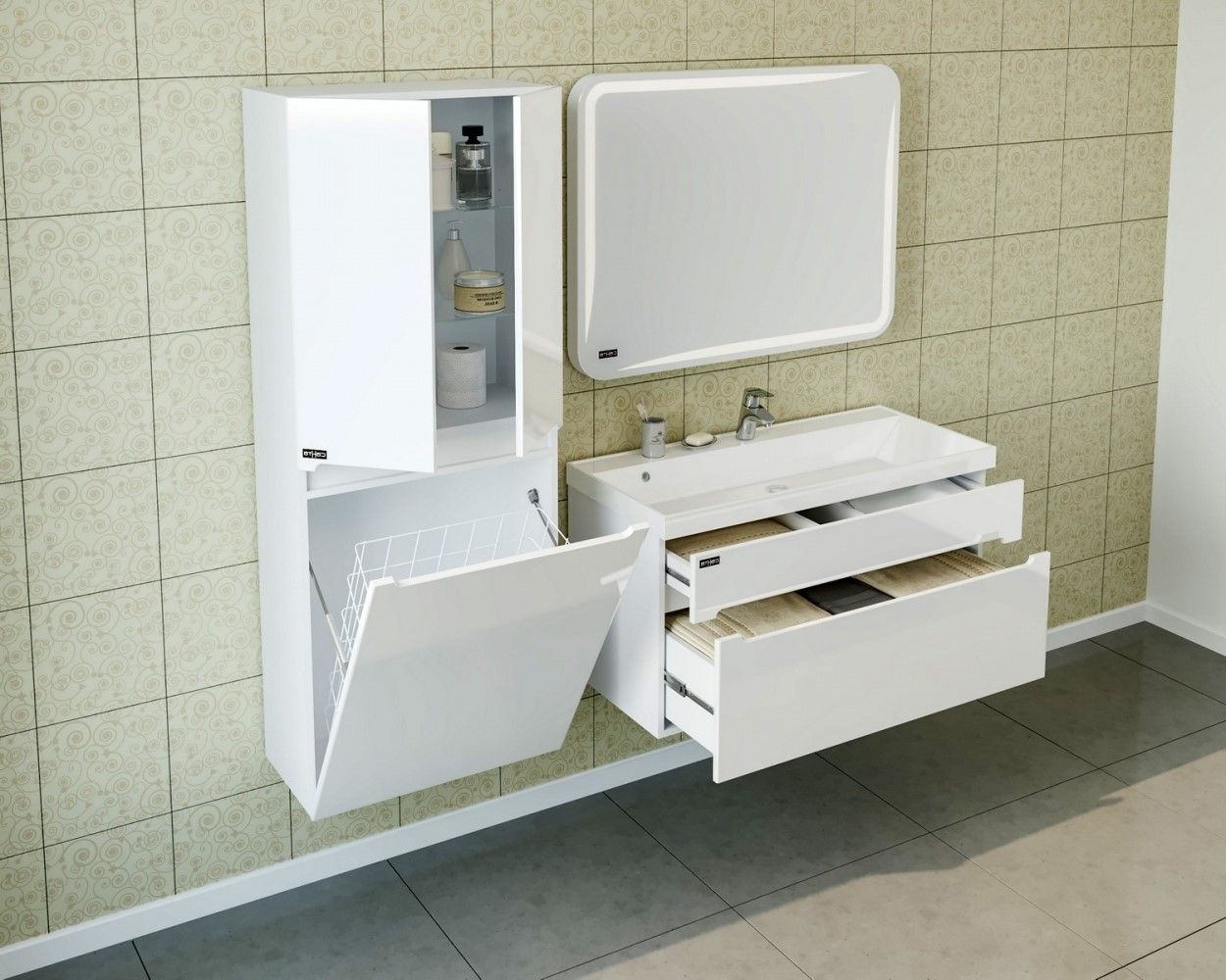Пенал СанТа Лондон 524005 с бельевой корзиной 60см белый купить