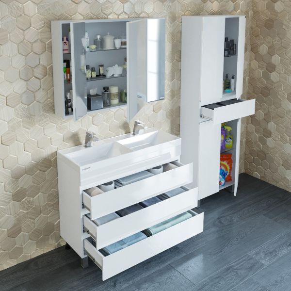 Шкаф-пенал СанТа отличное решение для создания комфортной атмосферы в любой ванной комнате. Напольный способ установки производится непосредственно на пол, при этом конструкция максимально устойчива при серьезных физических нагрузках. В производстве используют только качественные влагостойкие материалы (ВЛДСП), в составе которых полностью отсутствуют опасные вещества. Серия Вегас отличается превосходным дизайном с соблюдением всех существенных элементов современного стиля. Основным цветом, в котором выполнен шкаф-пенал СанТа является белый, безупречно впишется в любой дизайн проект. Шкаф-пенал предусматривает удобную и вместительную систему хранения, состоящую из дверей.Страной бренда СанТа является Россия, все товары производятся с выполнением соответствующих стандартов качества, что позволяет быть полностью уверенными в долговечности и надежности. Шкаф-пенал СанТа поможет сделать уютным любой интерьер и создать идеальную ванную комнату.