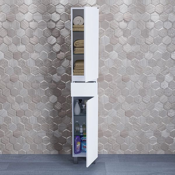 Шкаф-пенал СанТа отличное решение для создания комфортной атмосферы в любой ванной комнате. Напольный способ установки производится непосредственно на пол, при этом конструкция максимально устойчива при серьезных физических нагрузках. В производстве используют только качественные влагостойкие материалы (ВЛДСП), в составе которых полностью отсутствуют опасные вещества. Серия Вегас отличается превосходным дизайном с соблюдением всех существенных элементов современного стиля. Основным цветом, в котором выполнен шкаф-пенал СанТа является белый, безупречно впишется в любой дизайн проект. Шкаф-пенал предусматривает удобную и вместительную систему хранения, состоящую из дверей.Страной бренда СанТа является Россия, все товары производятся с выполнением соответствующих стандартов качества, что позволяет быть полностью уверенными в долговечности и надежности. Шкаф-пенал СанТа поможет сделать уютным любой интерьер и создать идеальную ванную комнату.