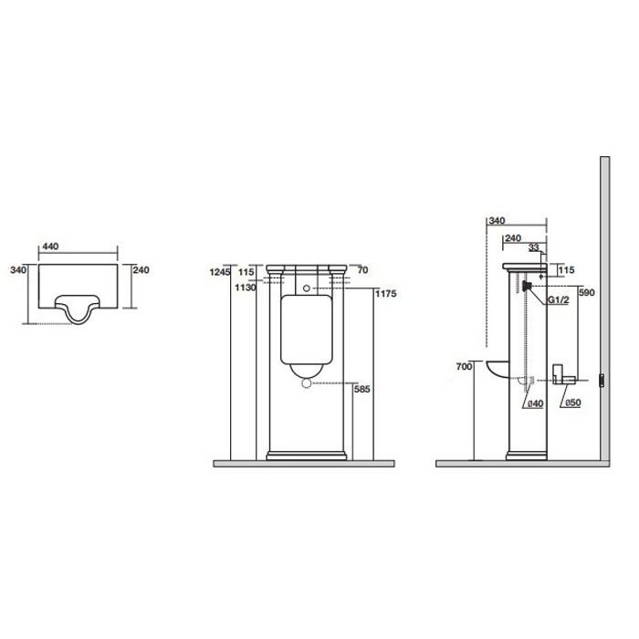 Писсуар Kerasan Waldorf 413101 напольный белыйПиссуар напольный Kerasan Waldorf с сифоном и комплектом крепежей, цвет белый, материал: санфаянс.