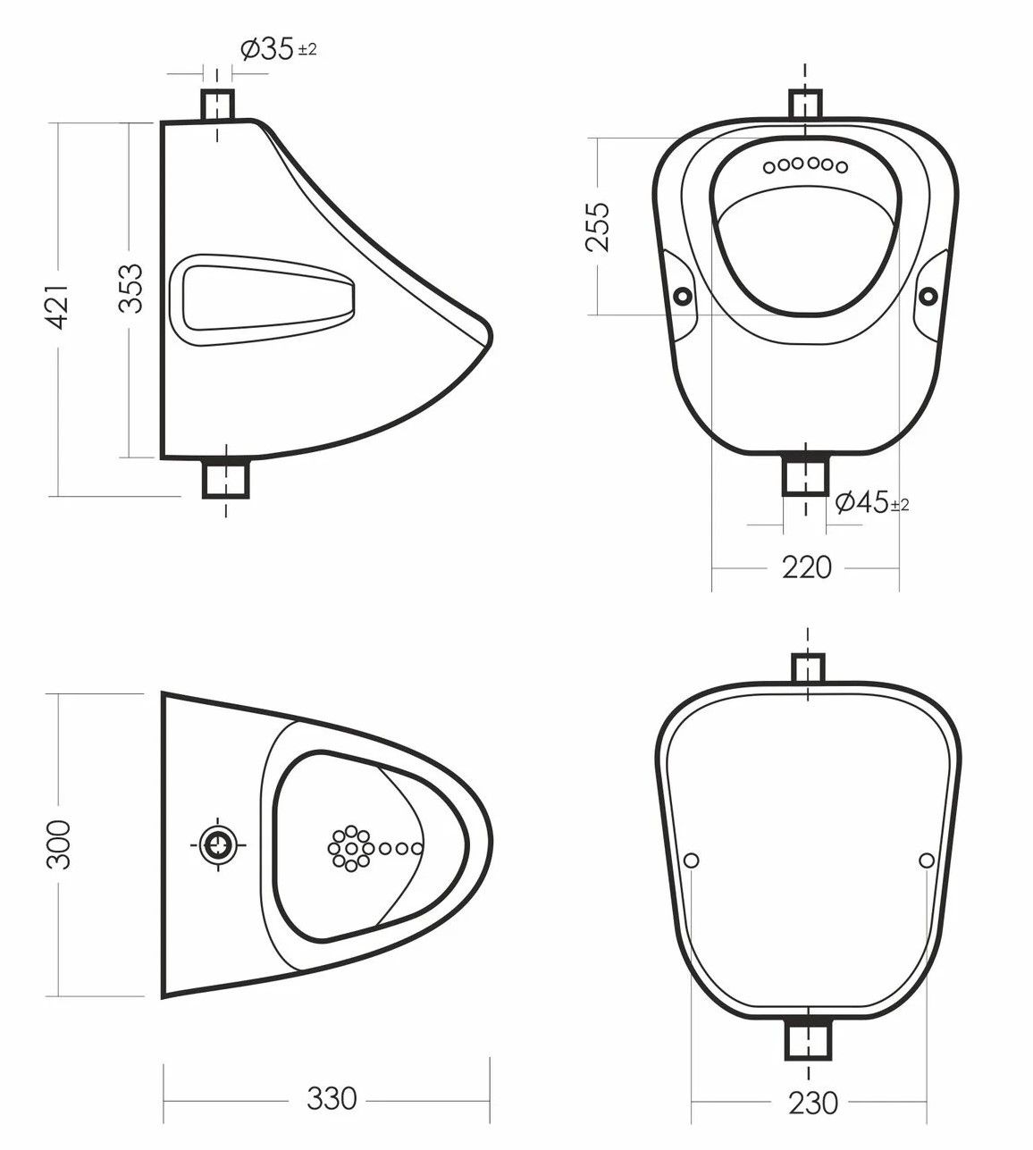 Размеры писсуара: 300 x 330 x 421