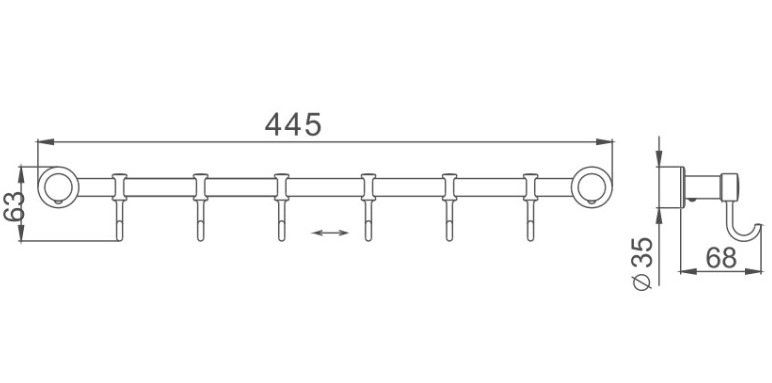 Планка с крючками для полотенец Haiba HB205-6 хром купить