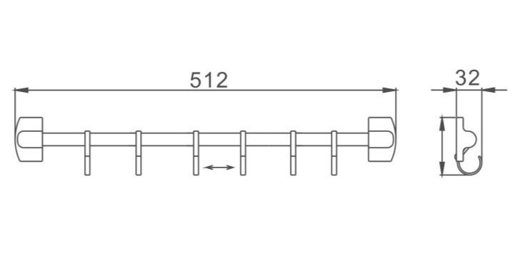 Планка с крючками для полотенец Haiba HB209-6 хром купить