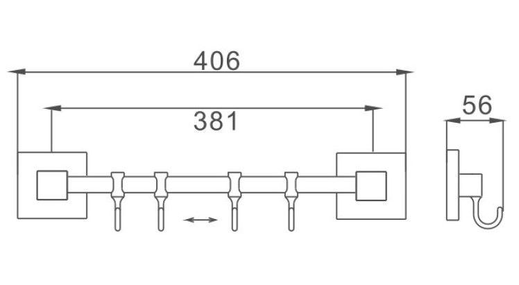 Планка с крючками для полотенец Haiba HB8615-4 хром купить