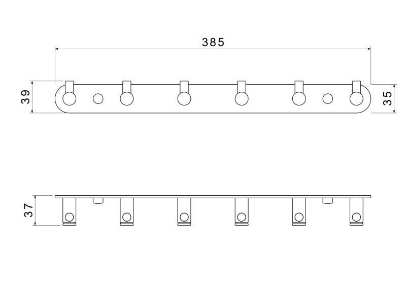 Общий размер (мм): 385*35*37Основной материал: латунь, нержавеющая стальМонтаж: на стенуМетод крепления: шурупыКоличество крючков: 6Назначение: аксессуарыТип продукта: крючок для полотенецГарантия (лет): 5Легкая установка
