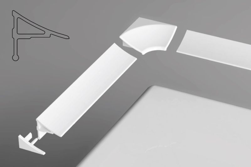 Декоративная планка подходит для всех душевых поддонов и ванн. Перекрывает зазор между стеной и гранью ванны или поддона после нанесения силиконового герметика.