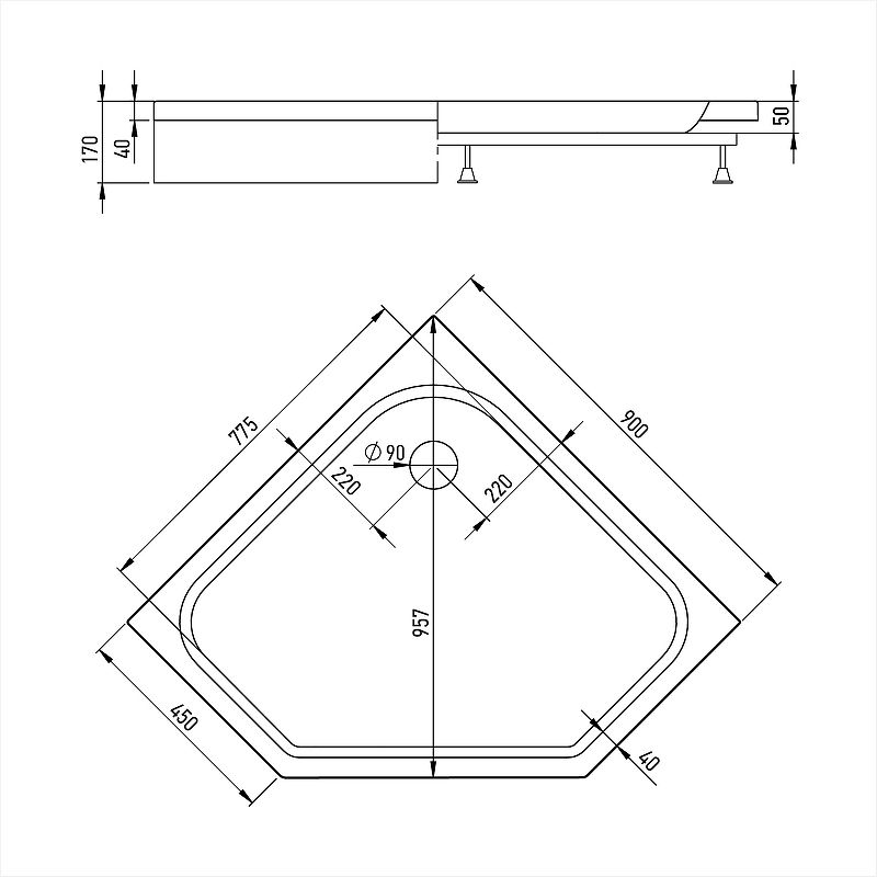 Поддон для душа Alex Baitler 90х90 AB9017V-1 БелыйБлагодаря укреплению пенополиуретановым армирующим покрытием Ecolid акриловый поддон Alex Baitler АВ9017V-1 отличается высокой прочностью, а также отличными тепло- и звукоизоляционными свойствами. Поддон рассчитан на нагрузку до 500 кг.