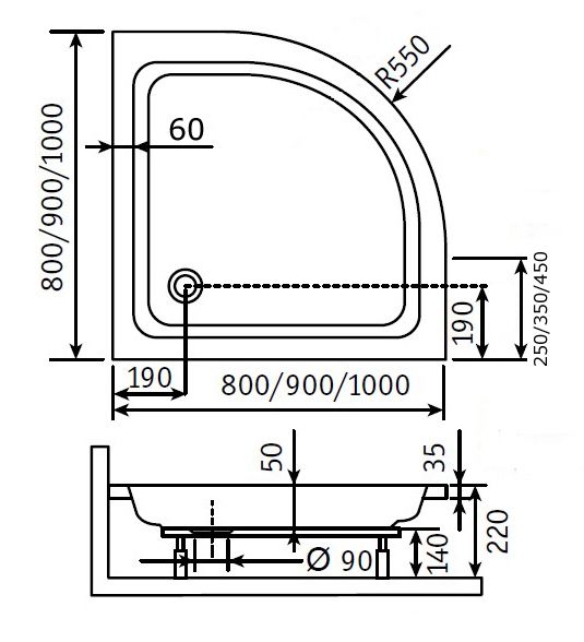 Акриловый поддон для душа