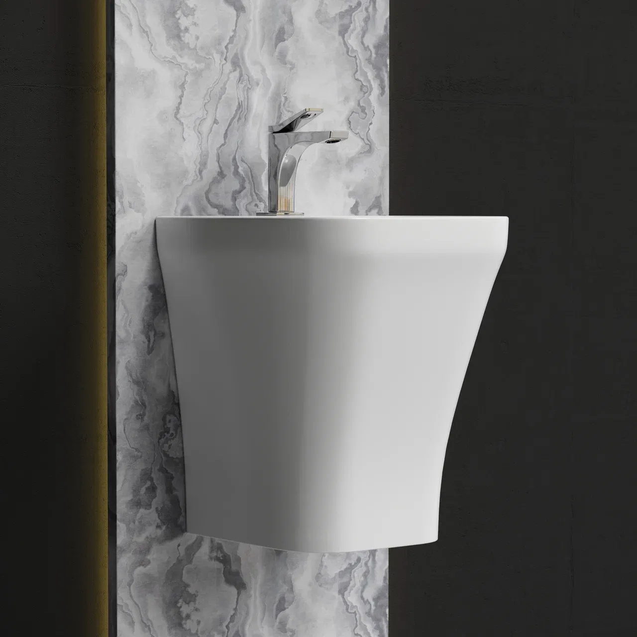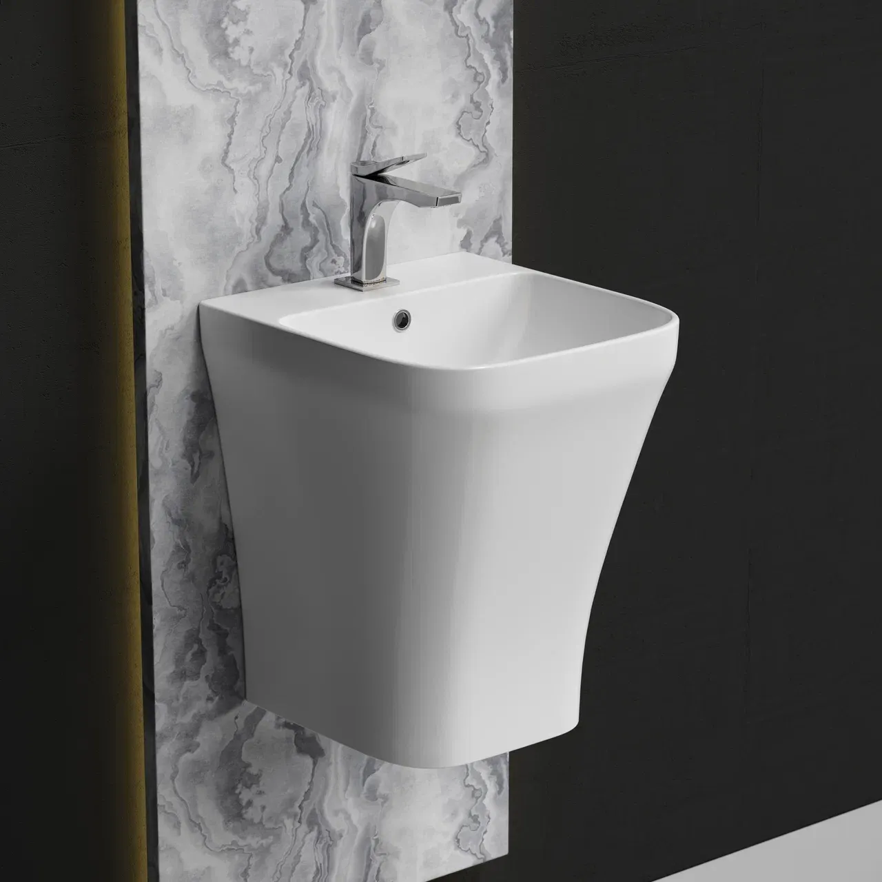 Раковина моноблок подвесная DION с отверстием под смеситель, со сливом переливом