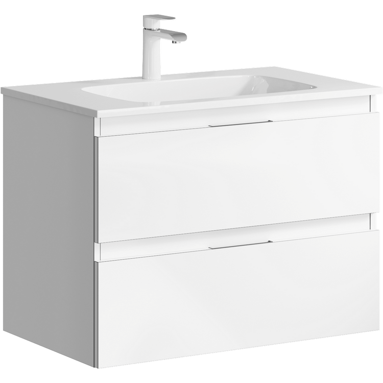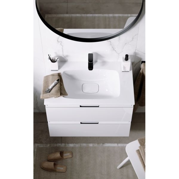 Подвесная тумба под раковину Aqwella Accent ACC0175W 75 смПодвесная тумба с двумя ящиками в белом цвете с умывальником из литьевого мрамора