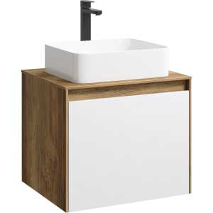 Подвесная тумба под раковину Aqwella Mobi MOB0106DB+MOB0706W 60 смПодвесная тумба 60 см с двумя ящиками: основной и внутренний, скрытый за фасадом. Цвет дуб балтийский/белый; с умывальником