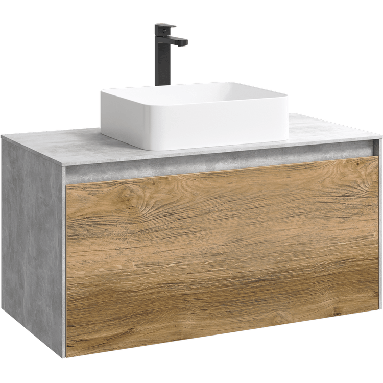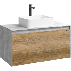 Подвесная тумба под раковину Aqwella Mobi MOB0110BS+MOB0710DB 100 смКоллекция Mobi гармонично вписывается в интерьер любой современной ванной комнаты. Так как существует возможность комбинировать фасады и корпуса трех цветов: бетон светлый, дуб балтийский и белый глянец.Подвесная тумба 100 см с двумя ящиками: основной и внутренний, скрытый за фасадом. Цвет бетон светлый/дуб балтийский; с умывальником