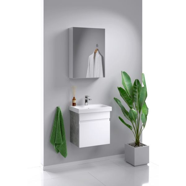 Подвесная тумба под раковину Aqwella Smart SRT0106BS 60 смПодвесная тумба с одним ящиком, цвет бетон светлый с умывальником