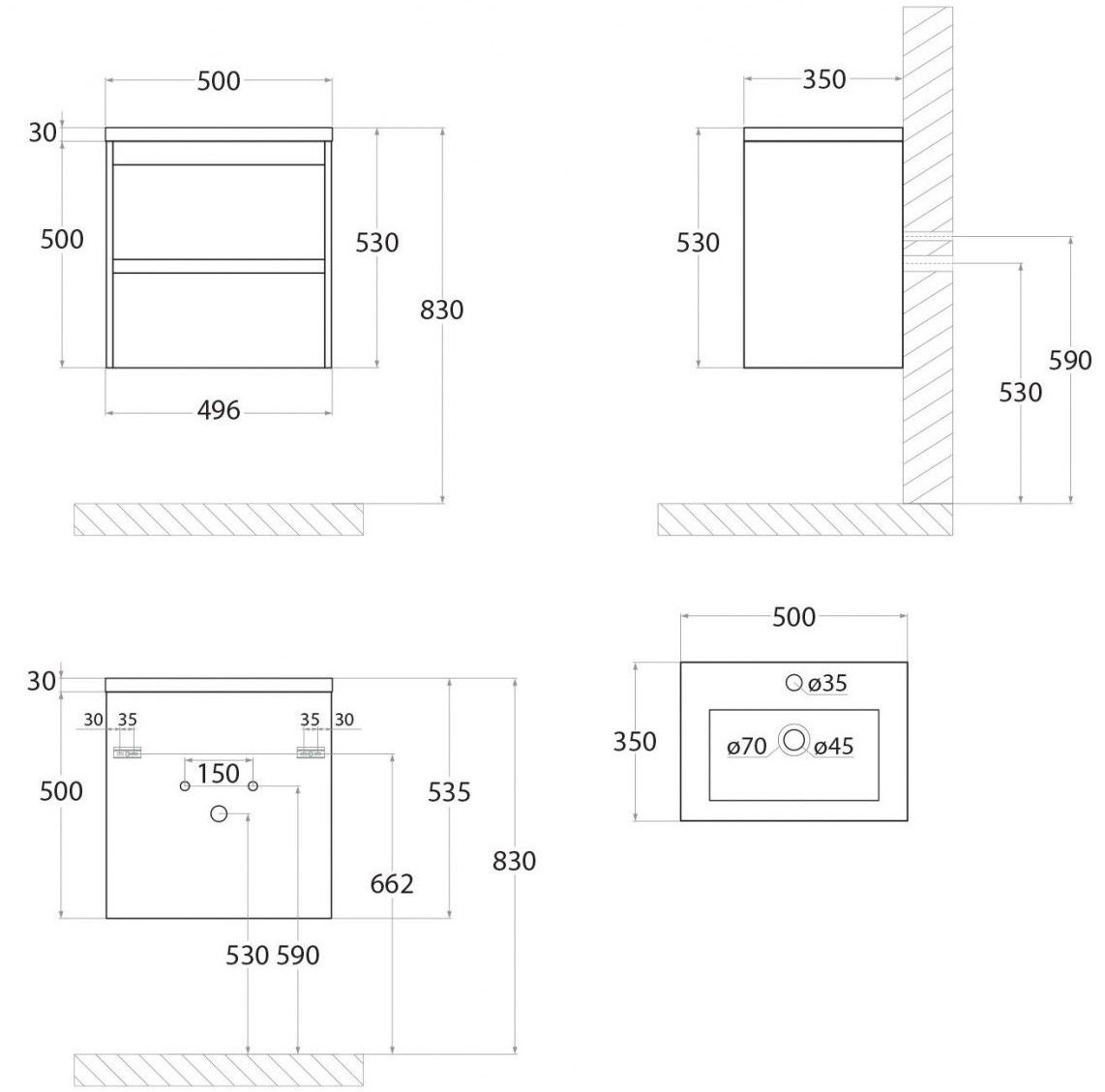 - Рекомендуемая высота от пола: 830 мм