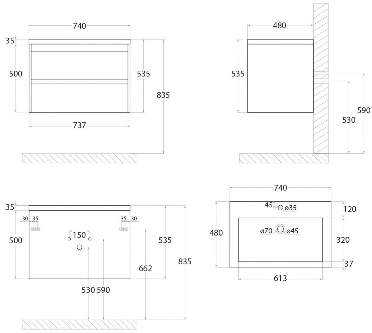 - Рекомендуемая высота от пола: 830 мм
