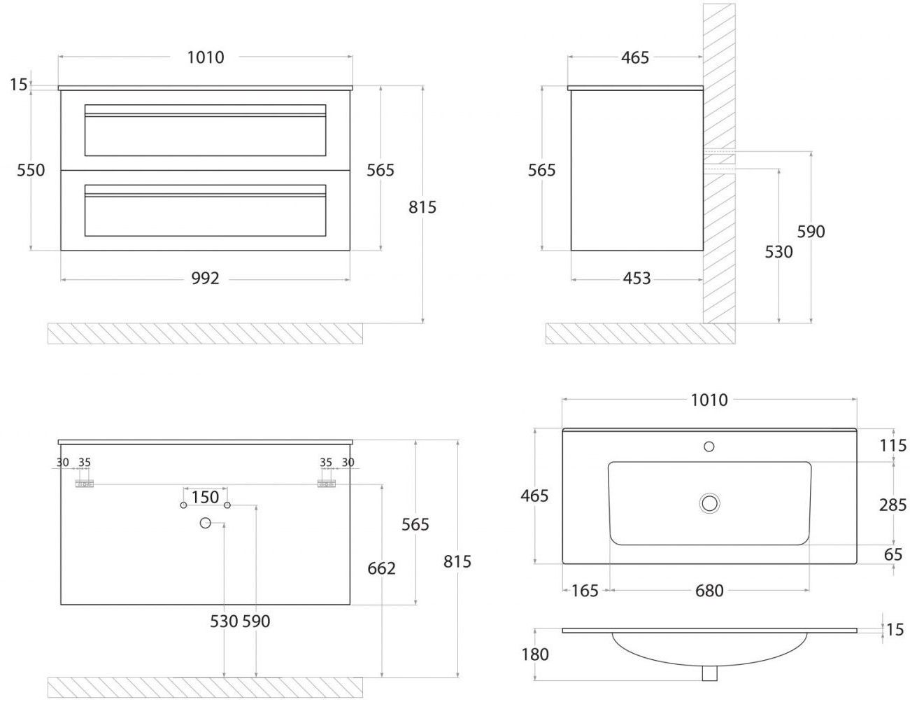 Подвесная тумба под раковину Art&Max Platino 100см серый матовый AM-Platino-1000-2C-SO-GM-Cer купить