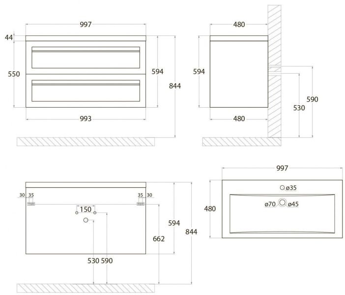 Тумба под раковину Art&Max выполнена в современном стиле и прекрасно впишется в интерьер любой ванной комнаты. Благодаря подвесной конструкции изделие не занимает много места, позволяет экономить пространство и облегчает уборку. Модель оснащена двумя выдвижными ящиками с доводчиками. Фасад изделия выполнен из МДФ.Тумба может использоваться вместе с раковиной AM-LAV-1000-MR-A.Раковина и смеситель в комплект поставки не входят и приобретаются отдельно.Особенности: