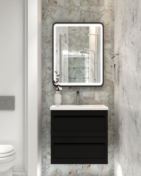 Подвесная тумба под раковину Art&Max Platino 60см чёрный матовый AM-Platino-600-2C-SO-NM-Cer купить