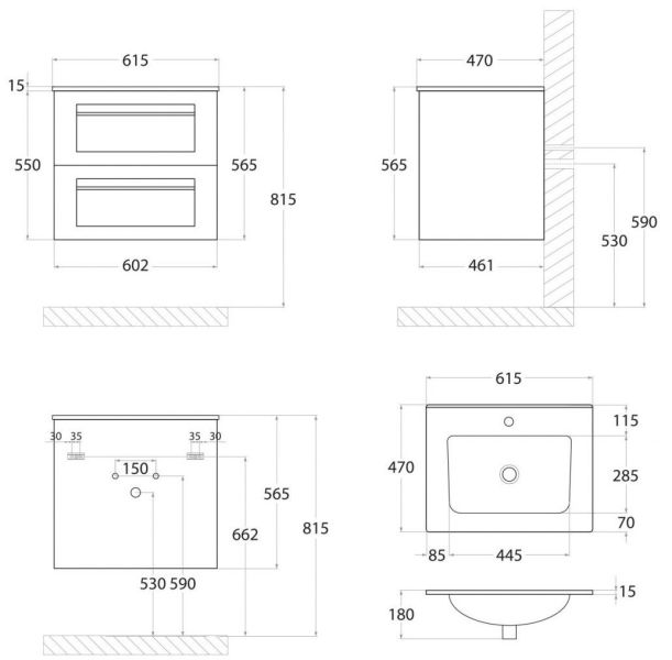 - Рекомендуемая высота от пола: 844 мм