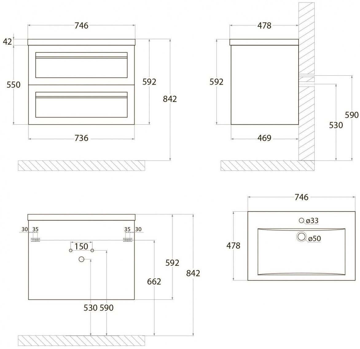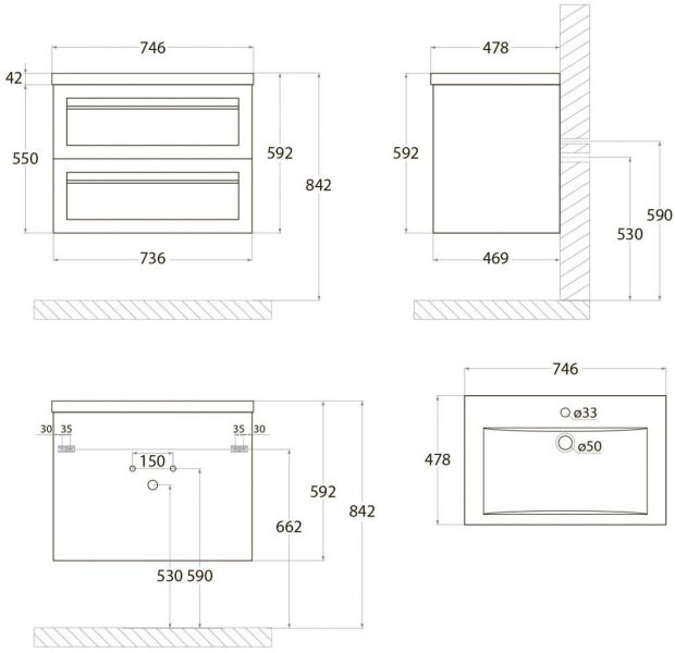 - Рекомендуемая высота от пола: 842 мм