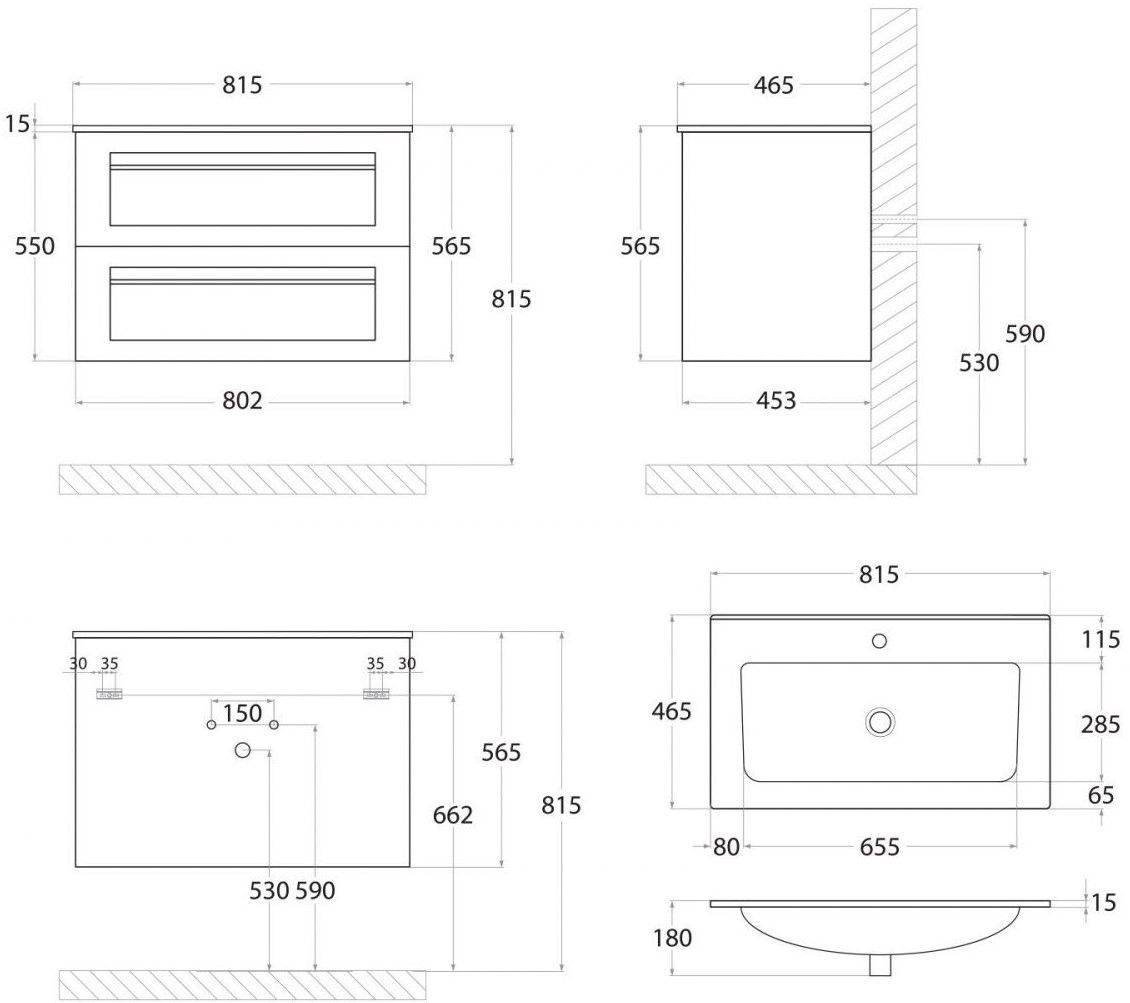 Подвесная тумба под раковину Art&Max Platino 80см чёрный матовый AM-Platino-800-2C-SO-NM-Cer купить