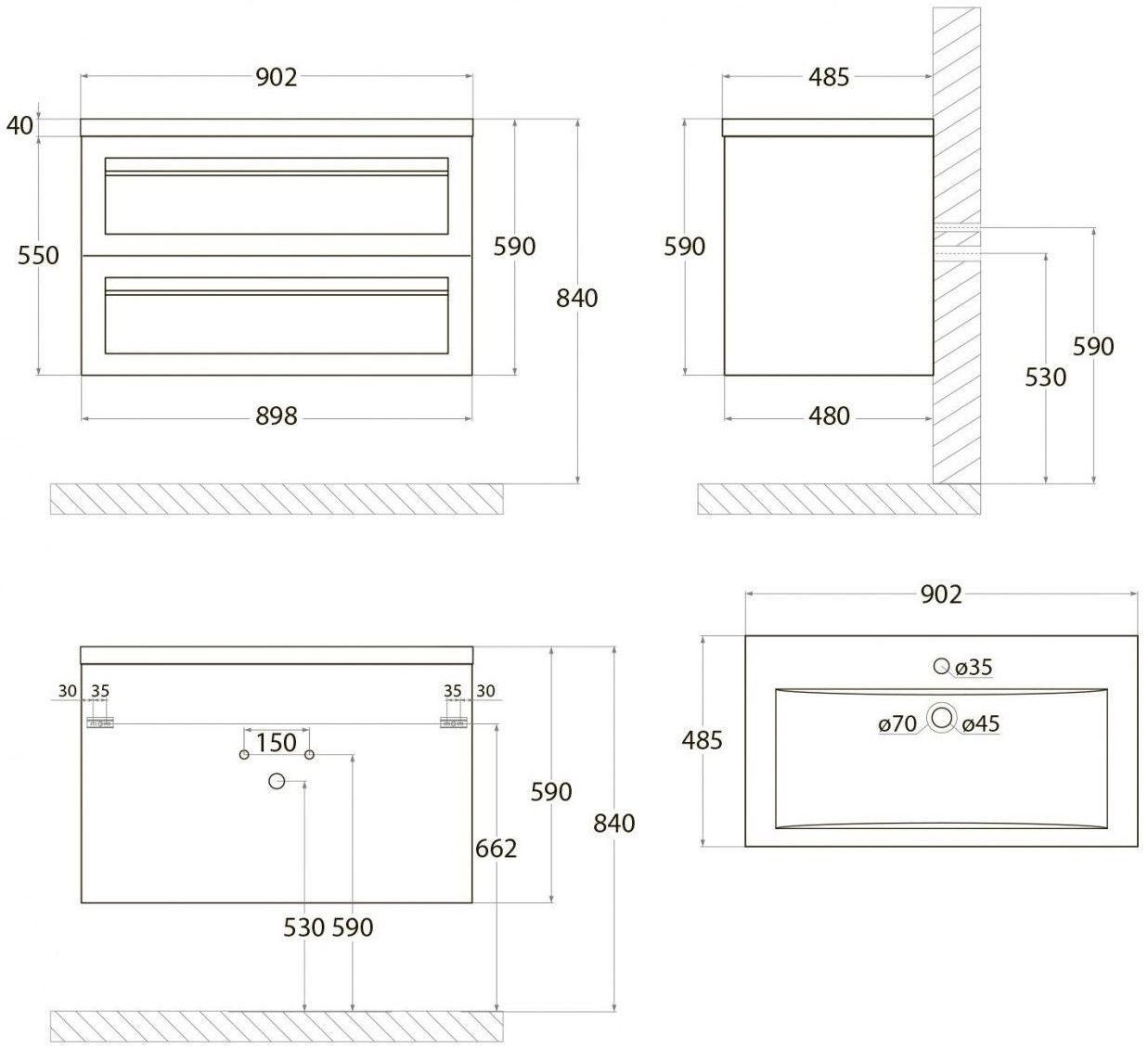 Тумба под раковину Art&Max выполнена в современном стиле и прекрасно впишется в интерьер любой ванной комнаты. Благодаря подвесной конструкции изделие не занимает много места, позволяет экономить пространство и облегчает уборку. Модель оснащена двумя выдвижными ящиками с доводчиками. Фасад изделия выполнен из МДФ.Тумба может использоваться вместе с раковиной AM-LAV-900-MR-A.Раковина и смеситель в комплект поставки не входят и приобретаются отдельно.Особенности: